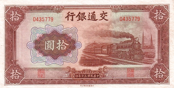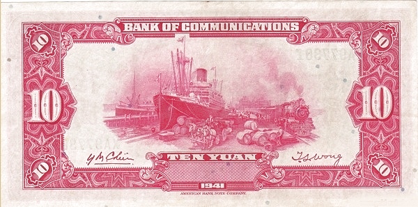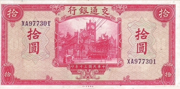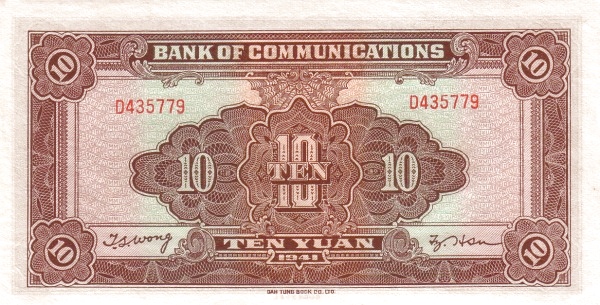 10 / 10 / BANK OF COMMUNICATIONS / 10 / 10 TEN / 10 / TEN YUAN / 1941 / 10 / 10