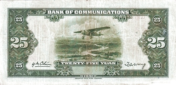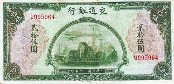 25 / 25 / BANK OF COMMUNICATIONS / 25 / TWENTY FIVE YUAN / 25 / 1941 / 25 / 25