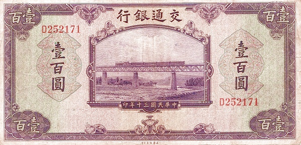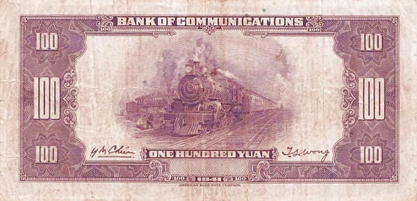 100 / 100 / BANK OF COMMUNICATIONS / 100 / ONE HUNDRED YUAN / 100 / 1941 / 100 / 100