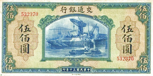 500 / 500 / BANK OF COMMUNICATIONS / 500 / FIVE HUNDRED YUAN / 500 / 1941 / 500 / 500