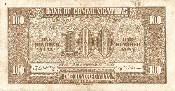100 / 100 / BANK OF COMMUNICATIONS / ONE HUNDRED YUAN / 100 / ONE HUNDRED YUAN / ONE HUNDRED YUAN / 1942 / 100 / 100