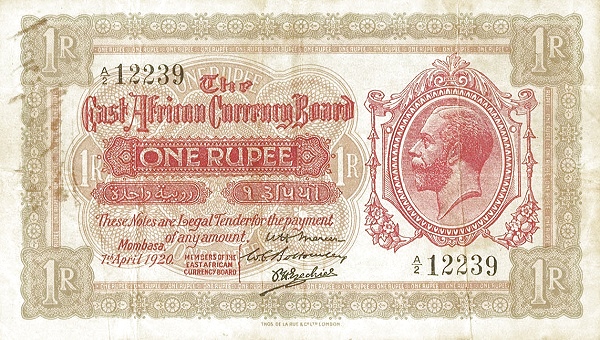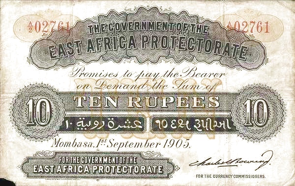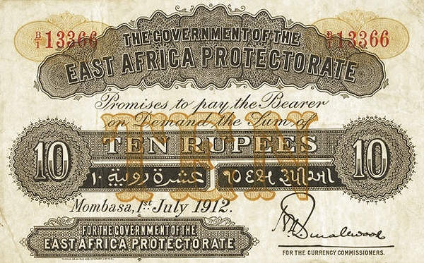 BEARER ON DEMAND THE SUM OF / 10 TEN RUPEES 10 / MOMBASA (date)